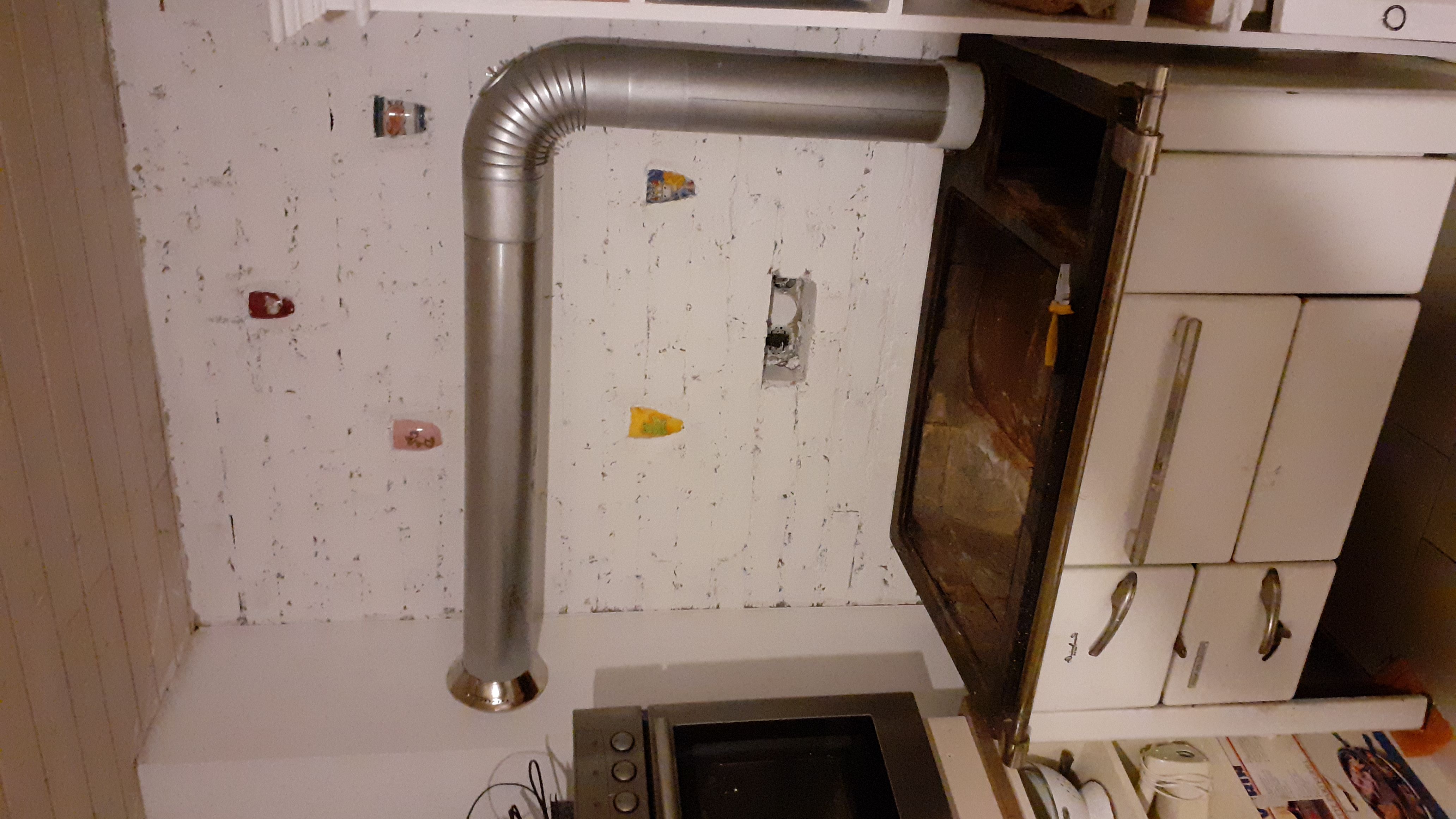 Es hat 4 Zimmer und eine große Wohnküche, in welche ich 2019 noch einen extra Kamin und einen Wamsler (Holzofen zum Kochen und heizen) einbauen ließ.