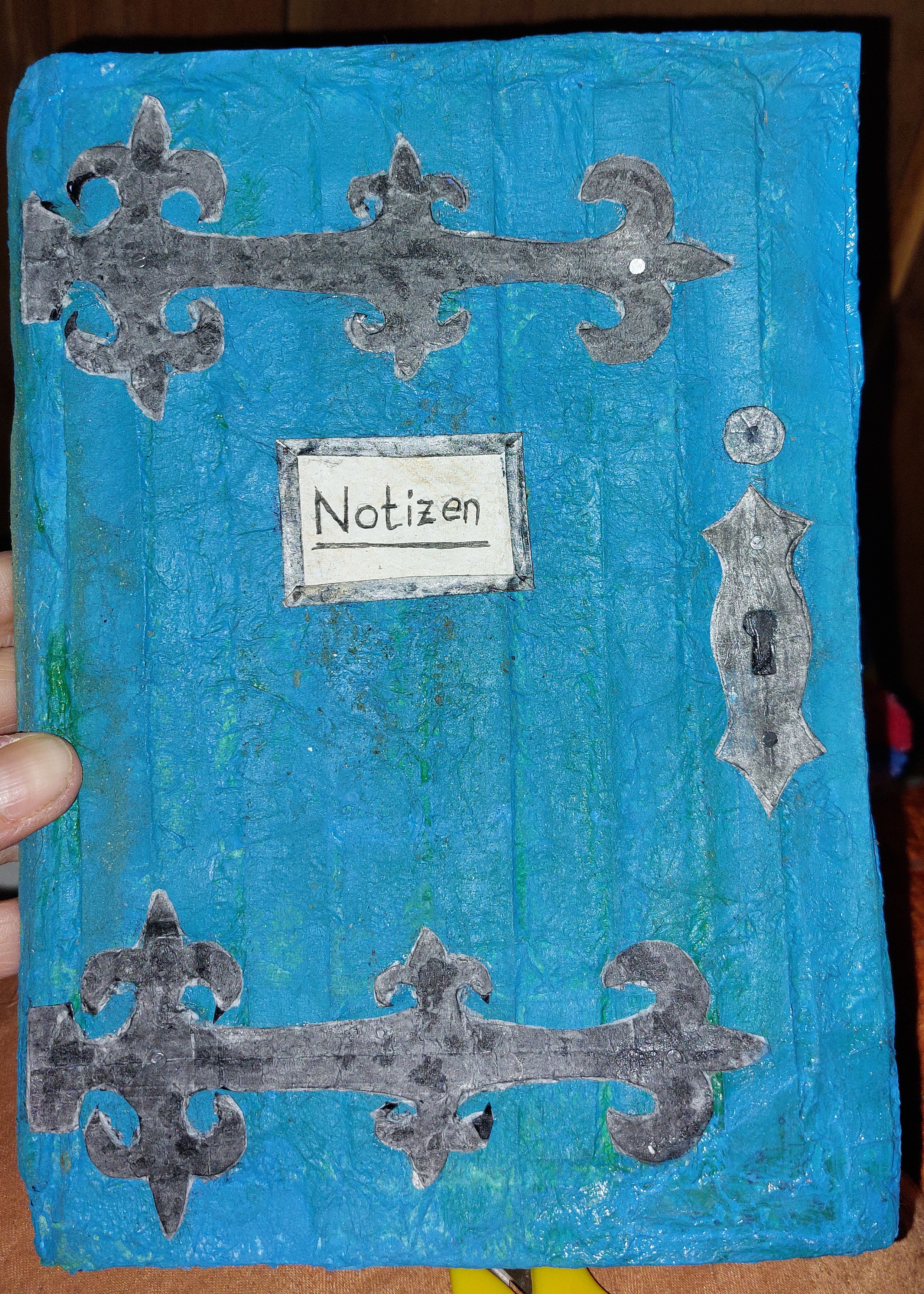 Neu dazu gekommen sind die Notizbücher. Diese sind komplett upgecycelt. Das Papier ist aus der Mittelschicht von TetraPaks, die Einbände gestalte ich aus allem, was mir in die Hände fällt. Lediglich Farbe und Kleber müssen regelmässig neu gekauft werden.
